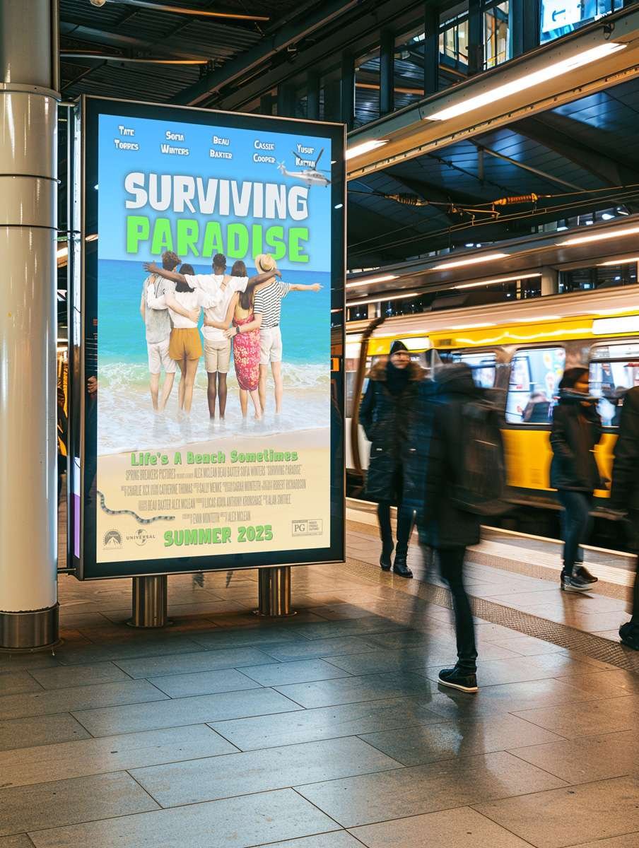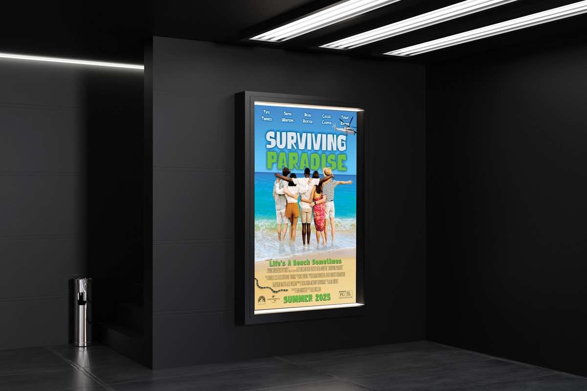 - I was provided a storyline in the Comedy-Drama genre to appeal to all audiences and had a PG rating. This presented me with a challenge, as it was not typically a genre of film I’m familiar with or usually consume, but researching common poster elements for these kind of films helped shape the design. Another difficulty arose with the requirement to use only stock photos, as the storyline had five diverse characters to feature prominently. I was able to work around this for the final design and it provided valuable experience when faced with these obstacles.